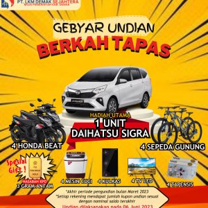 DEMAK- Akan dilaksanakan Gebyar Undian Rejeki Tapas pada Hari Senin 06 Juni 2023. Perbesar kesempatan menang dengan cara tingkatkan saldo […]